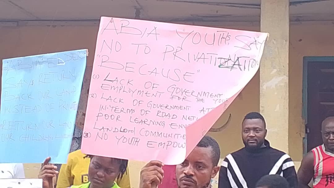Barely two days after farmers in Etomi Community, Etung Local Government Area of Cross River State staged a protest against the planned privatization of government cocoa estate, Abia community has joined the protest against the policy.