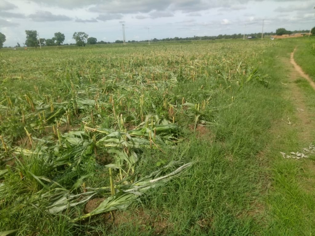 Many farmers suffered similar fate on their farmlands. Maize stalks, once lush and green were flattened, and destroyed down weeks before harvest.