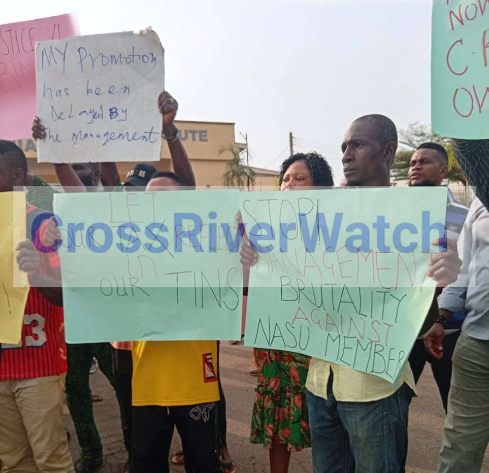 In a protest letter addressed to the institute’s management and signed by NASU branch chairman, Comrade Egwu Inamang Ukam, the workers further complained that the institute failed to pay the 2024 incremental step, which is meant to increase staff salaries annually. The angry protesters fingered management for playing foul with their tax deductions from their salaries, which do not reflect on their Tax Identification Numbers (TINs), despite regular deductions.